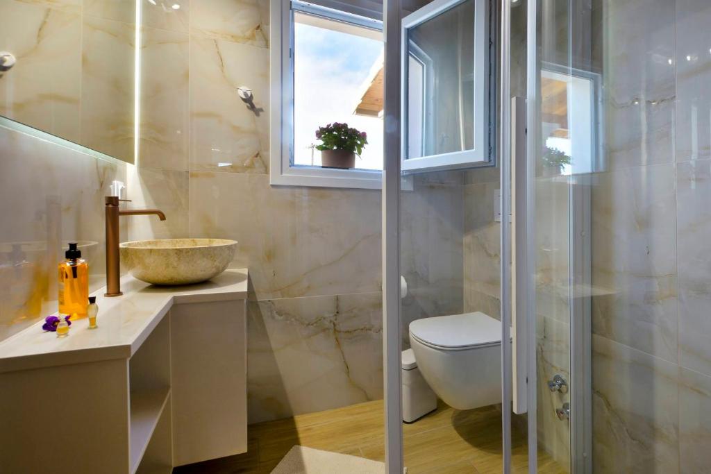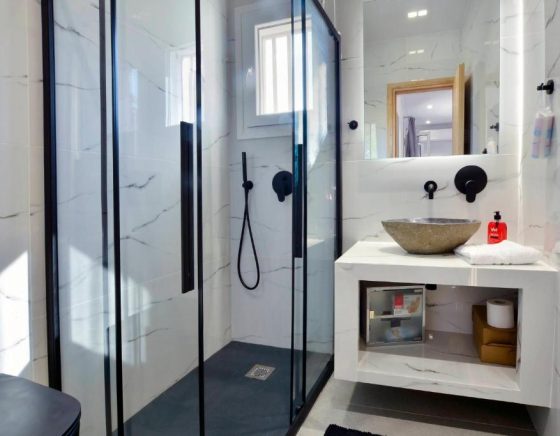 Η βίλα διαθέτει δύο άνετα υπνοδωμάτια και δύο πλήρως εξοπλισμένα μπάνια με μπανιέρα ή ντους και στεγνωτήρα μαλλιών, εξασφαλίζοντας άνεση για όλους τους επισκέπτες. Το σαλόνι προσφέρει έναν φιλόξενο χώρο χαλάρωσης, ενώ η κουζίνα είναι πλήρως εξοπλισμένη με ψυγείο και όλα τα απαραίτητα για την προετοιμασία γευμάτων. Το ευρύχωρο μπαλκόνι προσφέρει τη δυνατότητα να απολαμβάνετε τον ήλιο και την υπέροχη θέα στη γύρω περιοχή.